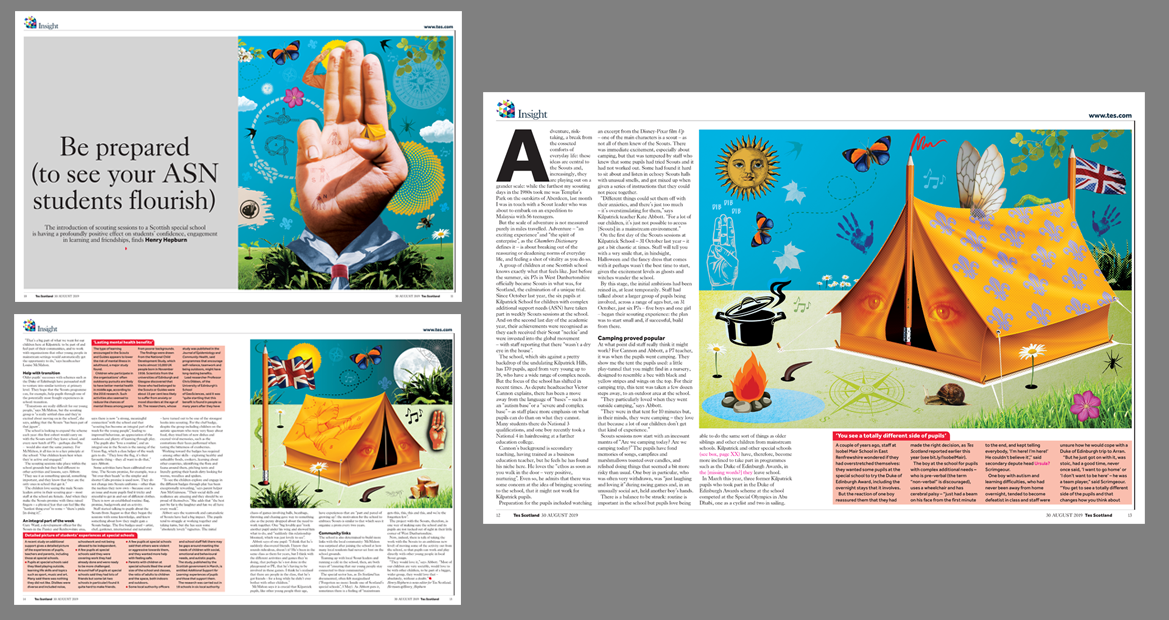Illustrations for feature about how Scouting, nature and the great outdoors can inspire both girls and boys with additional support needs